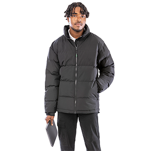 Cosy-fitting, lightweight and warm, this soft micro-peach recycled ripstop men’s jacket is hand-filled with recycled down-feel padded insulation. A university favourite and perfect for cold, damp weather.
